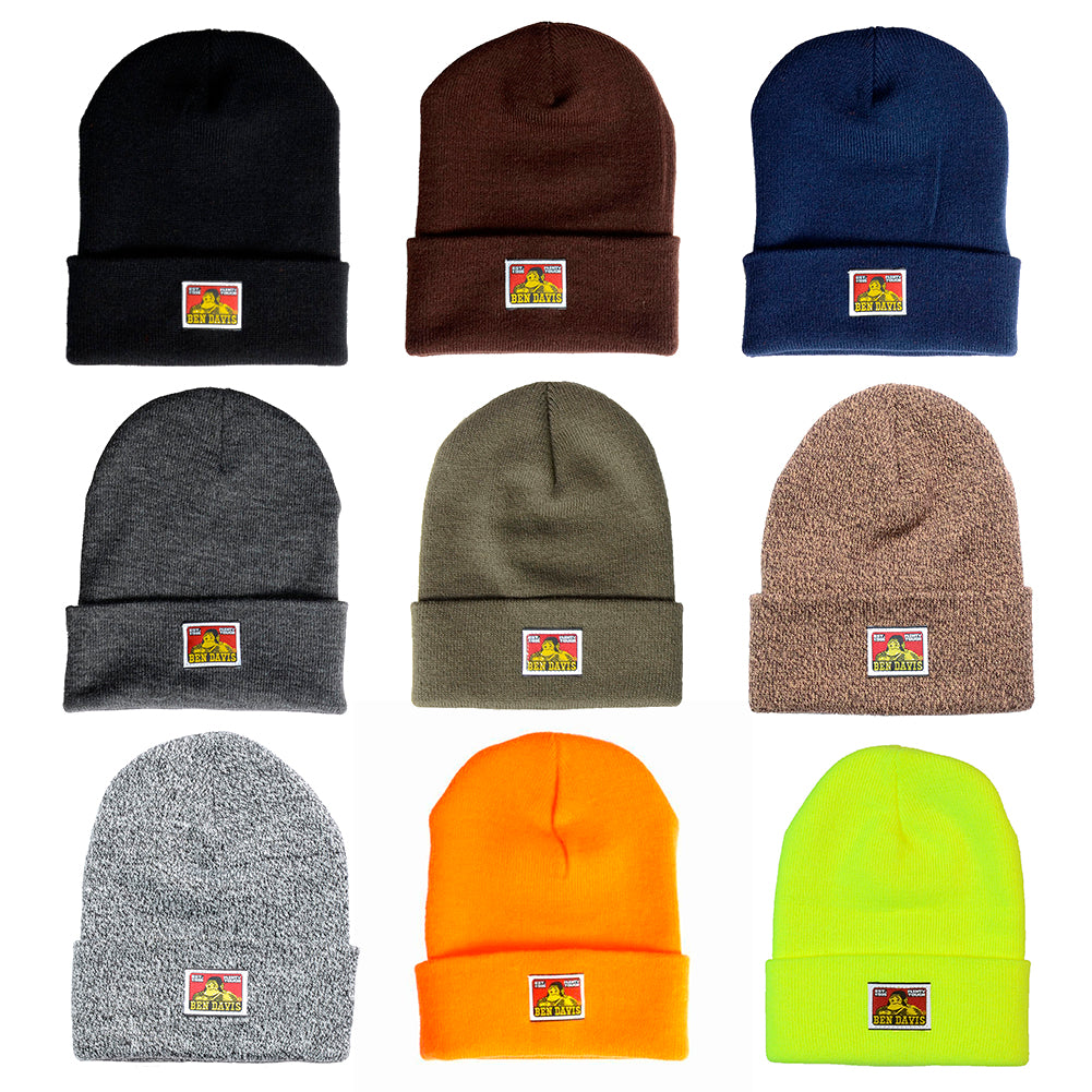 Ben Davis Beanie Unisex Acrylic Cuffed Knit Hat Mens Double Layered Casual Cap