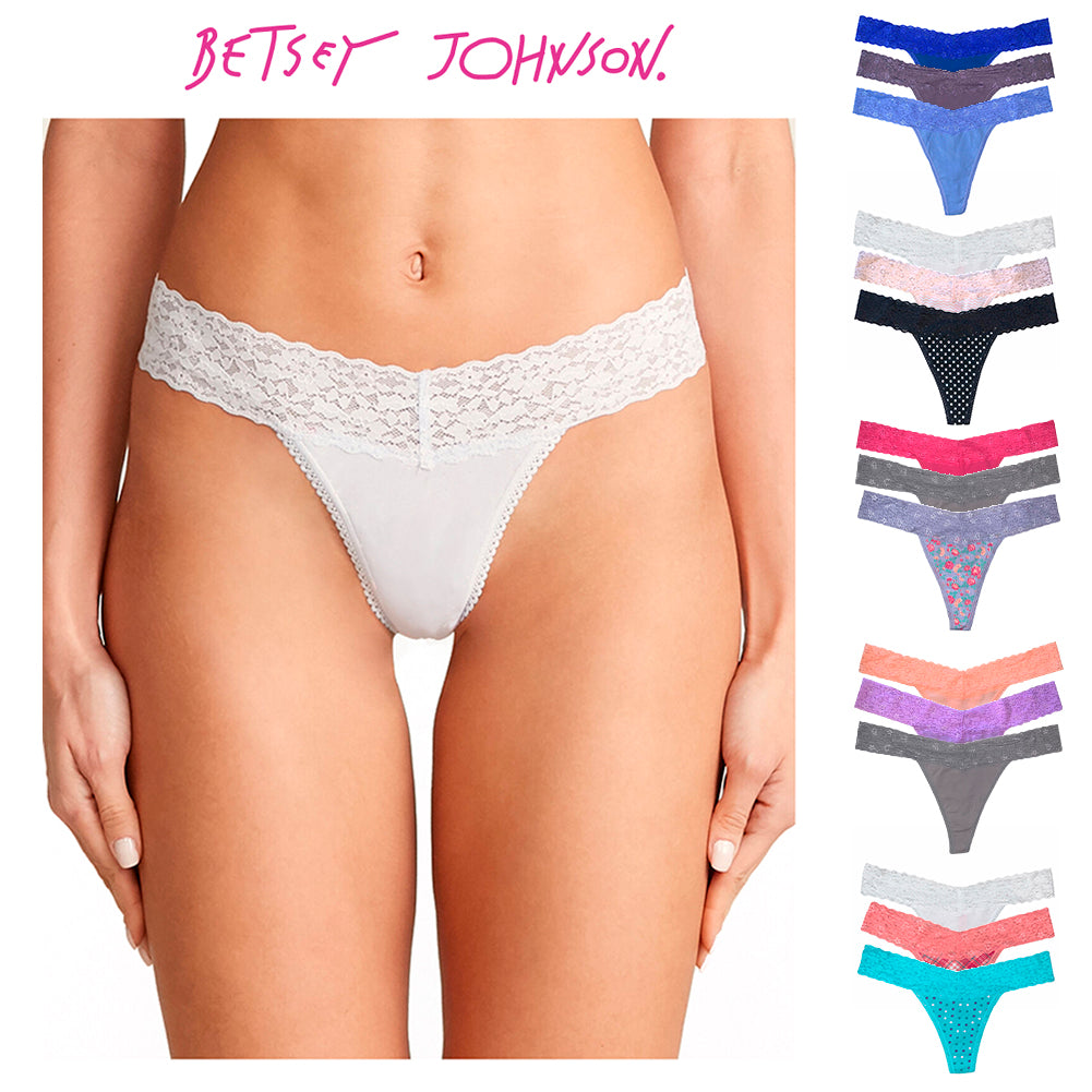 Betsy Johnson Women's Thong Panties 3 Pack Classic Lace Thong Panty Underwear