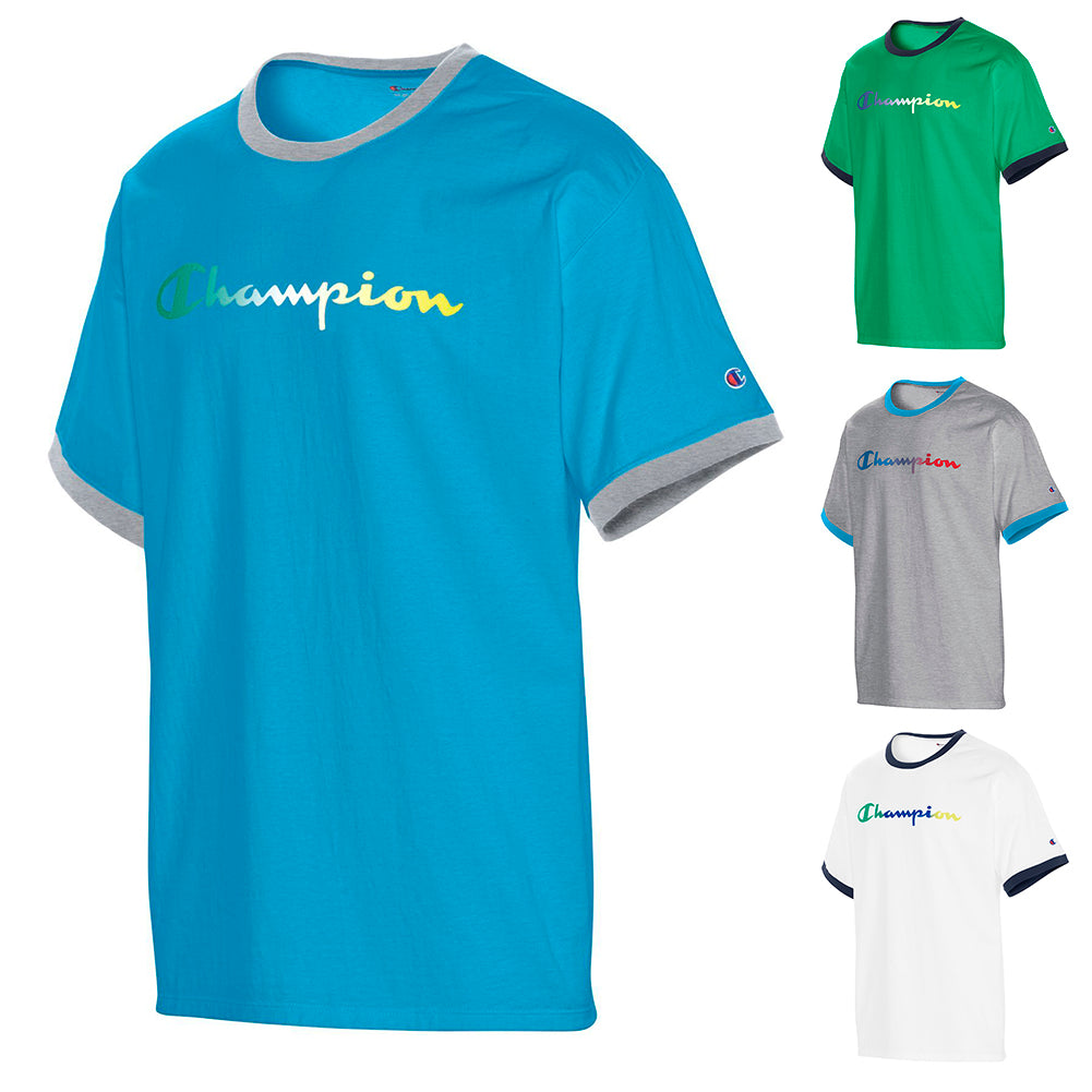 Champion Men's GT20H-Y08125 Short Sleeve Graphic Ringer Logo T Shirt