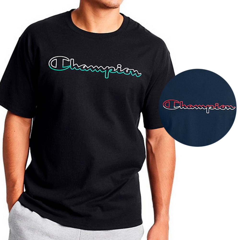 Champion Men's GT23H-Y08126 Short Sleeve Striped Front Script Logo T Shirt