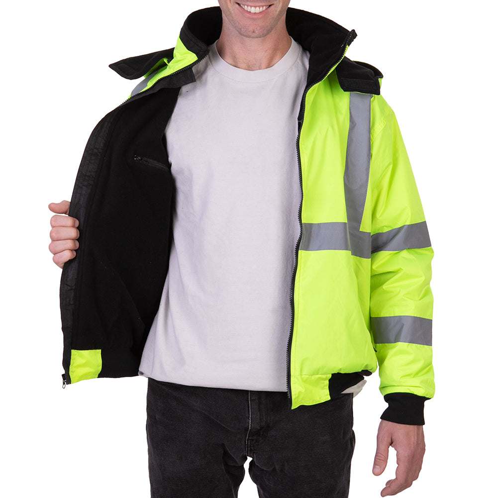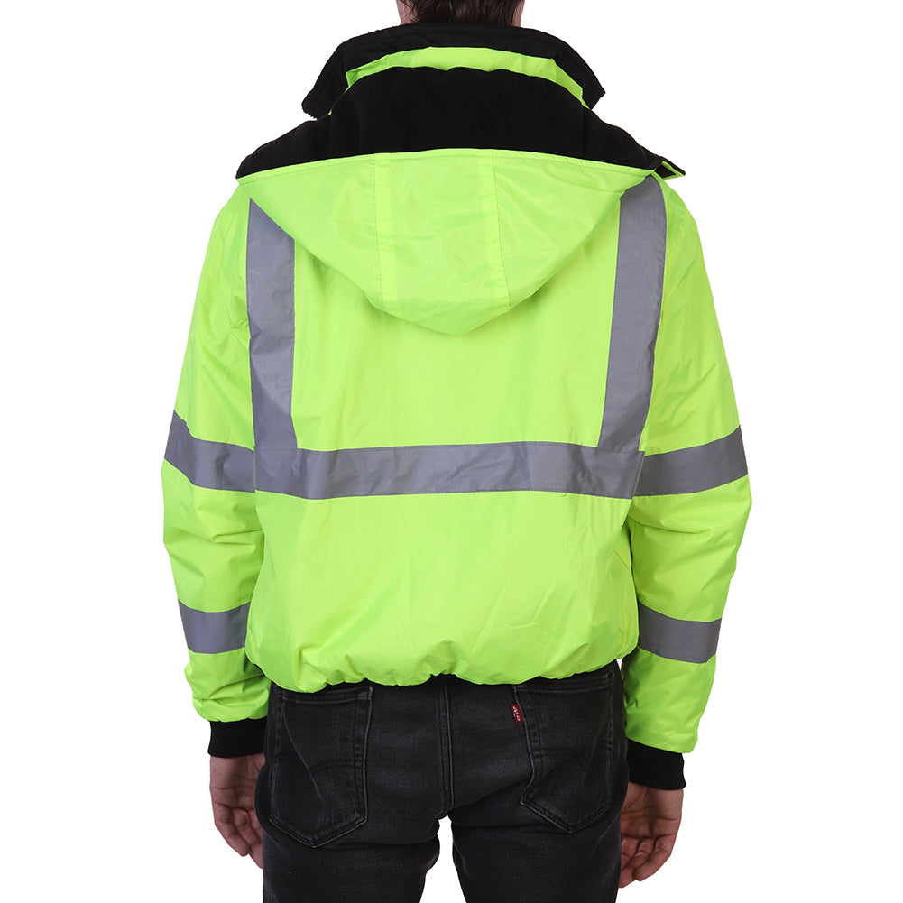 Maxxsel Men's Mock Neck Hooded Neon Reflective Jacket