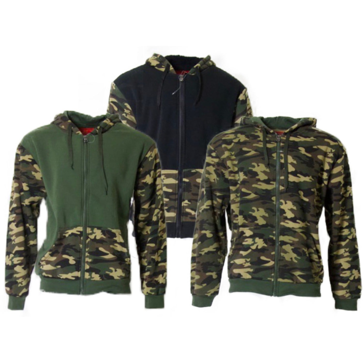 Mens Army Camo Zip Up Hoodie Sherpa Fleece Lining Sweater Jacket