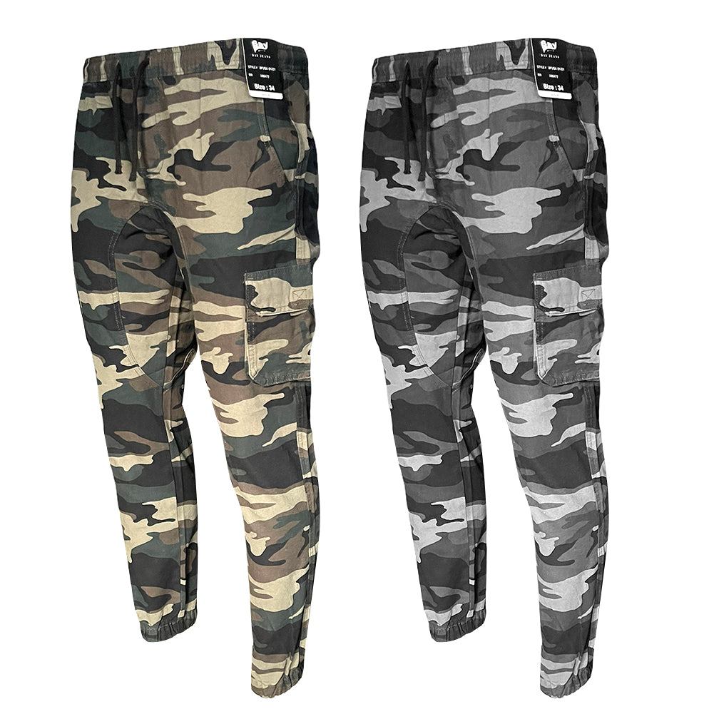Men's Cargo Pants Drawstring Waist Camouflage Print Casual Side Pocket Pants