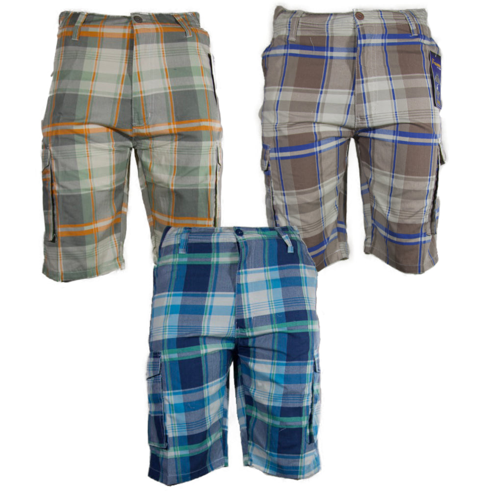 Men's Plaid Cargo Shorts Checkered Multi Pocket Lightweight Casual Button Shorts