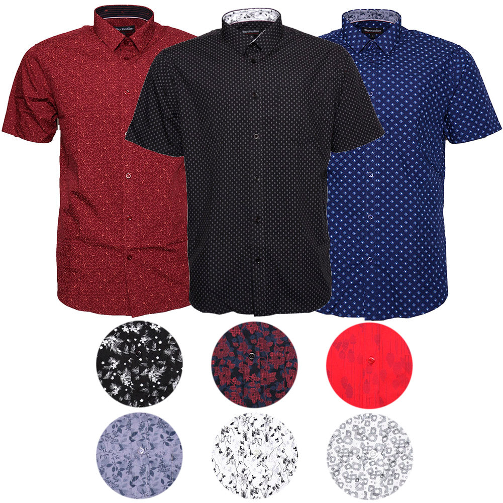 Mens Short Sleeve Print Cuff Button Dress Shirt Classic Fit