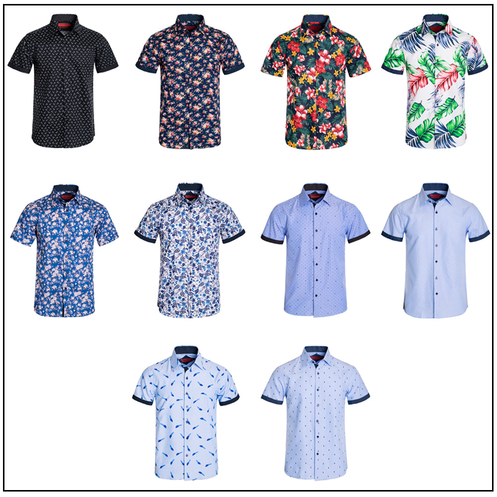 Men's Short Sleeve Shirt Button Down Casual Modern Fit Cotton Print