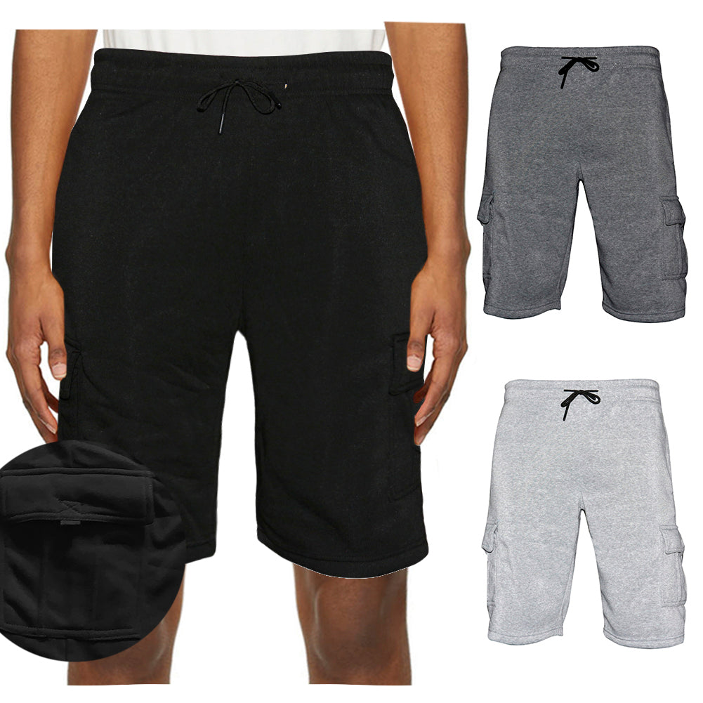 Mens Sweat Cargo Shorts Soft Cotton Lounge Gym Workout Drawstring Casual