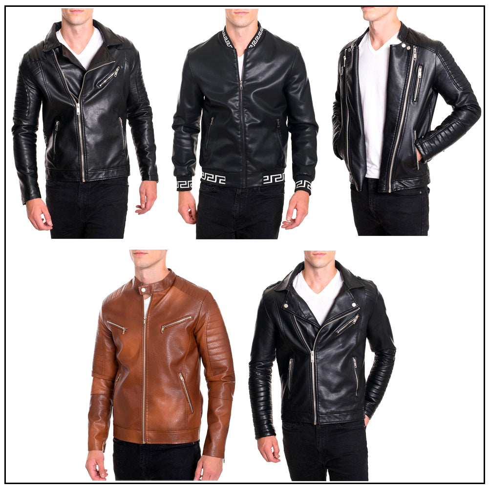Men's Vegan Leather Jacket PU Fall Winter Fashion Casual Biker Zipper Style