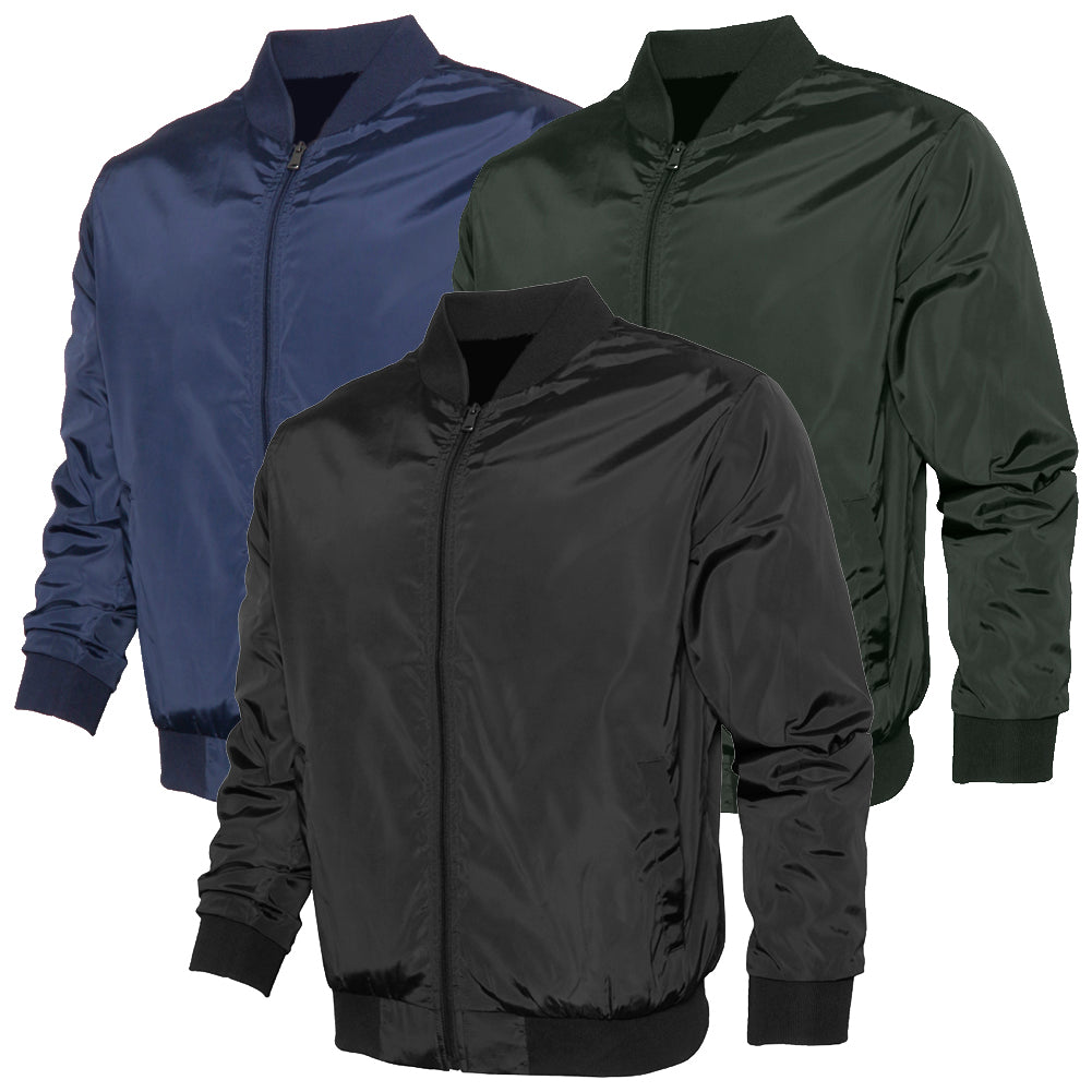 Mens Zipper Bomber Jacket Solid Color Lightweight Polyester Casual Regular Fit