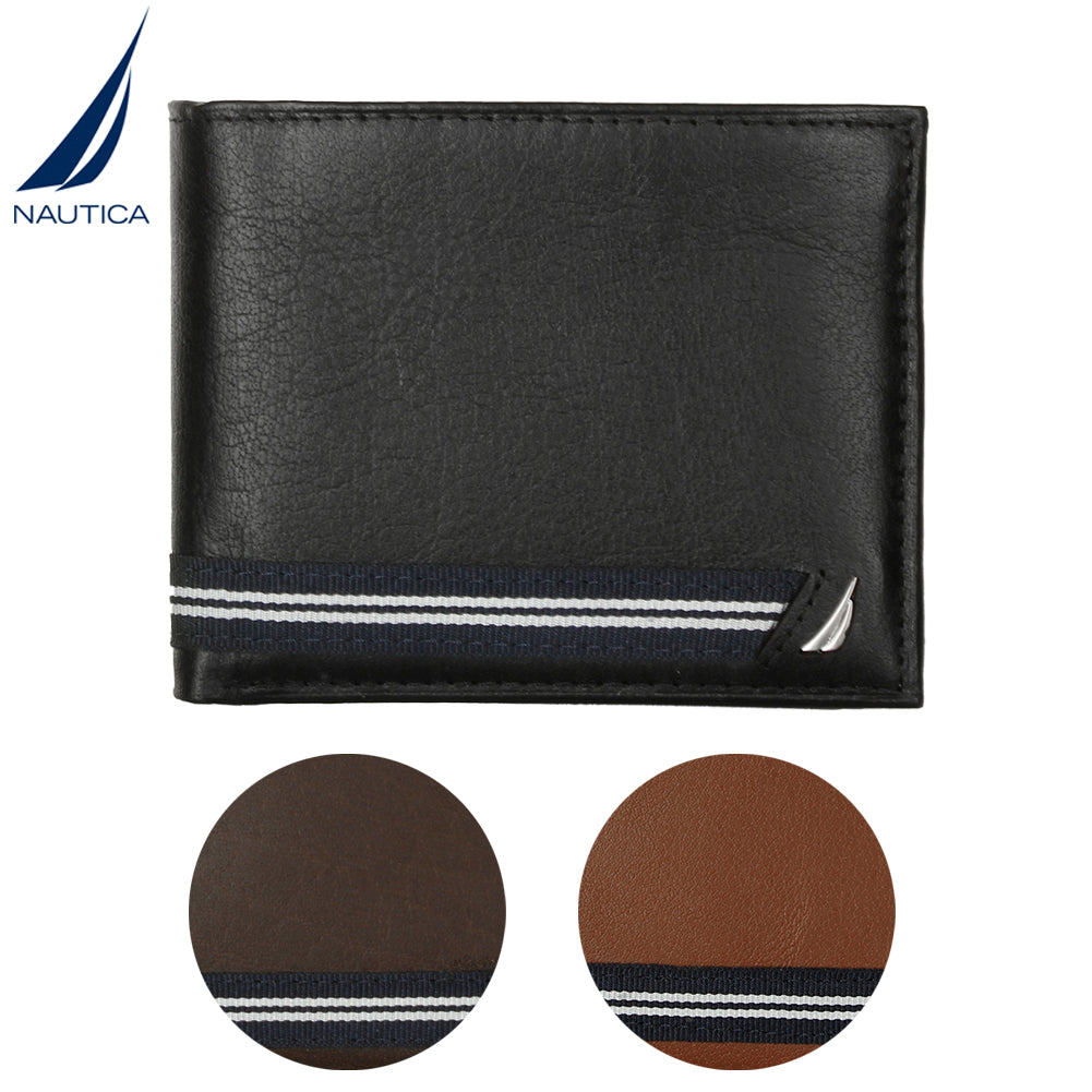 Nautica Men's 31NU140001 Leather Flip ID Window Ribbon Passcase Wallet