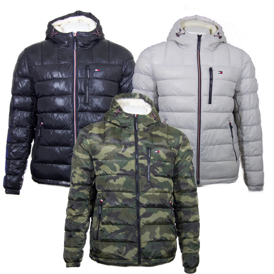 Tommy Hilfiger Men's Sherpa Lined Jacket Hooded Water Resistant Puffer Coat