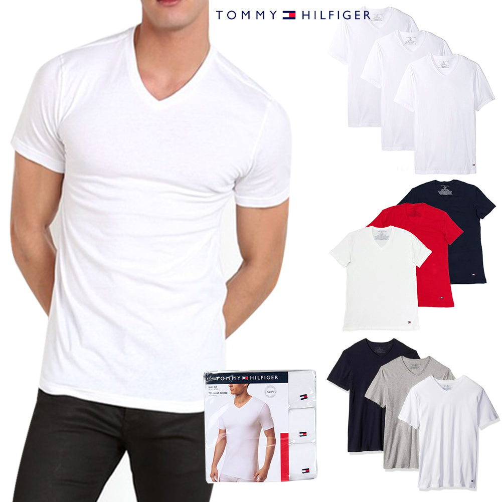 Tommy Hilfiger Men's T-Shirt 3 Pack Cotton Stretch Classic V-Neck Tee 09T3149